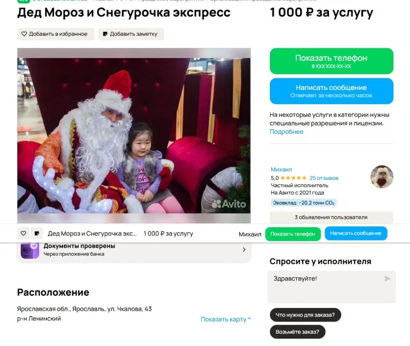 В Ярославле услуги новогодних аниматоров можно найти на любой бюджет — от простой видеооткрытки до большого праздника во дворе. "Про Город" изучил Авито.