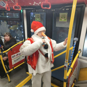 За 40 минут троллейбус курсировал от Ярославль-Главного до площади Волкова и обратно. По пути появлялись сказочные герои, а в финале — Дед Мороз с поздравлениями и подарками. На вокзале завершилась фотосессия у троллейбуса.