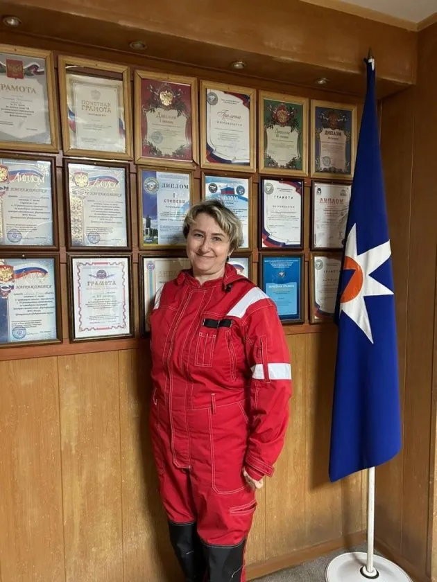 Немного расскажем и о самой Анне Шустровой, которая проводит экскурсию по спасательному отряду. Анна — единственный водолазный врач области, в отряд пришла в 2003 году, стаж уже 23 года.
