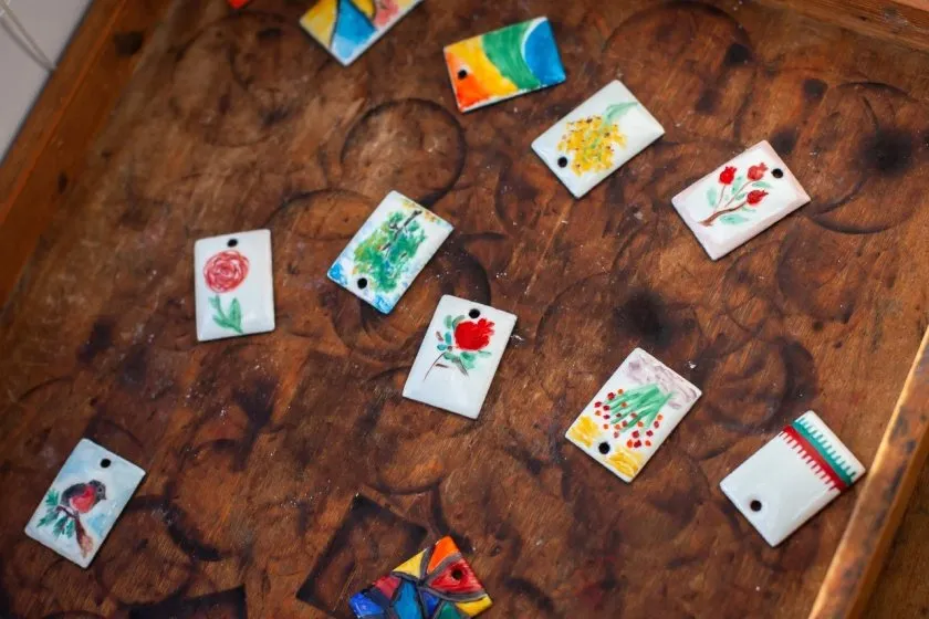 После экскурсии для нас провели мастер-класс. Всей семьей сели за стол: каждому дали эмалевую заготовку, краски, показали, как работать с эмалью. Дети и даже муж были погружены в процесс и рисовали сосредоточенно, а я испытала то прекрасное чувство, когда вся семья рядом и занята одним делом. После росписи наши миниатюры отправили в печь, и мы ждали результат, как маленькое чудо.
