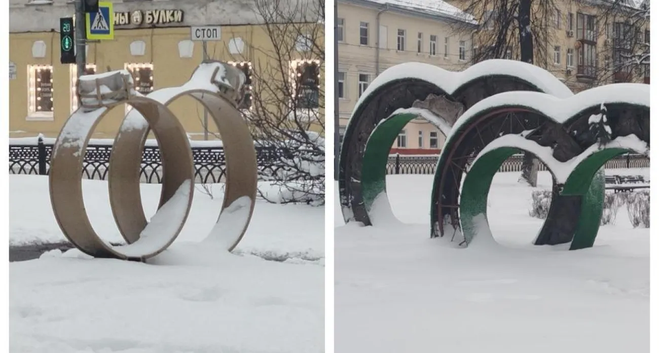 «Брошенные сердца» у памятника Петру и Февронии разваливаются в центре Ярославля