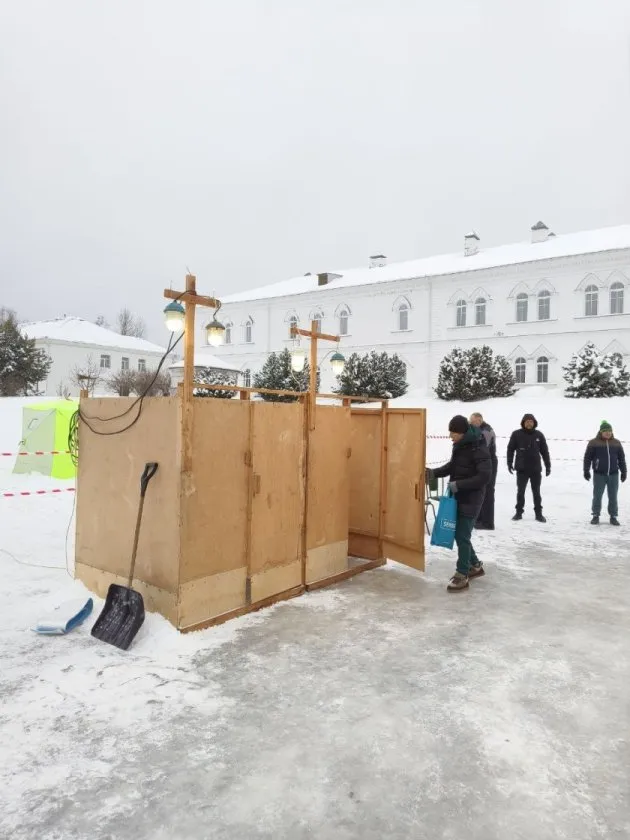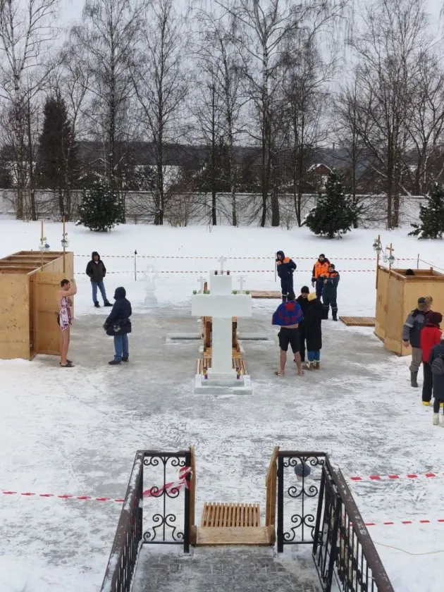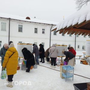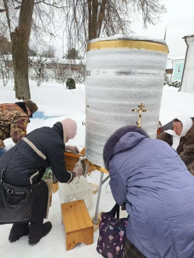 На территории монастыря 19 января было многолюдно: сотни ярославцев приезжали набрать святую воду. Стояли резервуары с водой, которую можно было набрать в свою посуду или выпить из одноразовых стаканчиков. Для тех, кто забыл тару, лежали пустые бутылки.