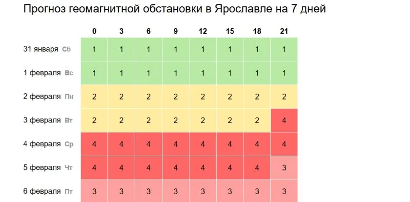 В ближайшие дни жителей Ярославля ожидает нестабильная геомагнитная обстановка. По данным сайта "time-in.ru", с 3 по 6 февраля 2026 года в регионе прогнозируются магнитные бури, которые могут повлиять на самочувствие людей, особенно чувствительных к изменениям в атмосфере.