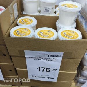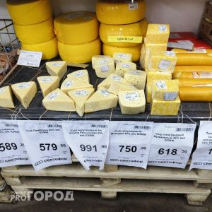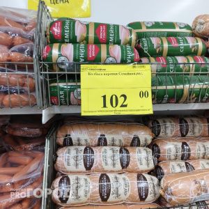 Сыры — от бюджетных вариантов за 579 рублей до премиум-продуктов из Углича почти за тысячу. Масло — 200 граммов за 161 рубль. А килограмм сметаны (целое ведро) обойдётся в 176 рублей, правда, с пометкой «БЗМЖ». Колбаса тоже удивляет — 102 рубля за килограмм, и по составу она полностью соответствует своей социальной цене.