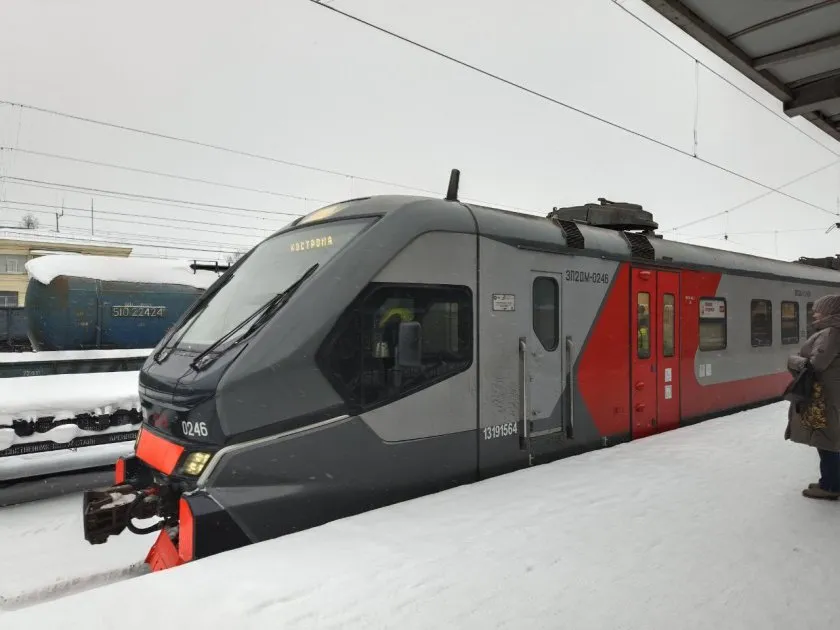 На следующий день мы снова отправились на станцию «Филино» — уже с целью прокатиться именно на лёгком метро. Но не успели: поезд ушёл буквально из-под носа, а следом подошла пригородная электричка «Уткино — Кострома-Новая».