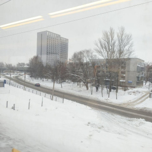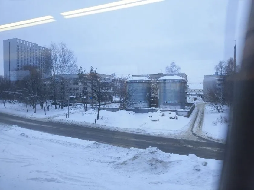 На третий день мы всё‑таки успели на рейс лёгкого метро в 8:24. Поезд снова прибыл к платформе у касс, но состав оказался старым — тем самым, что был в нашем первом сюжете: без Wi‑Fi, без розеток и с привычными жёсткими сиденьями. Время в пути — всё те же пять минут: в 8:29 мы уже были на «Приволжье». От станции до остановки «Онкобольница» на проспекте Октября идти всего 5 минут пешком, поэтому через пятнадцать минут после прибытия поезда мы уже добрались до офиса в бизнес‑центре «Североход».