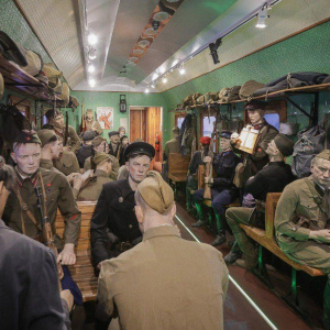 «Поезд Победы» прибыл в Ярославль и привез в город передвижную историческую экспозицию о событиях Великой Отечественной войны и жизни людей в те годы. В вагонах оформлены тематические инсталляции, архивные фотографии, документы и предметы быта, которые помогают почувствовать атмосферу того времени. Источником информации выступают организаторы проекта.