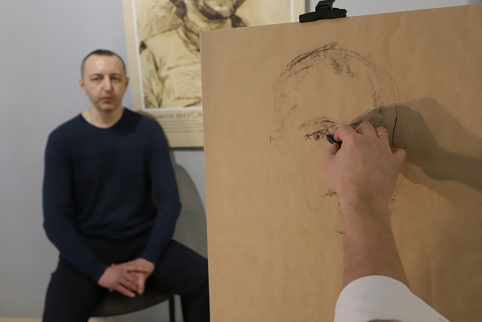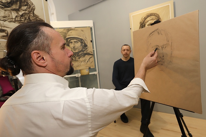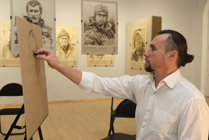 Во время торжественного открытия экспозиции Сергей Марченко не только рассказал о людях, изображенных на его работах, но и продемонстрировал процесс создания одного из портретов.