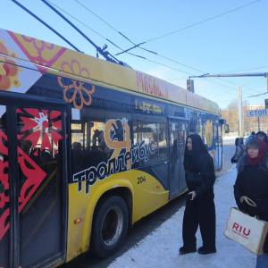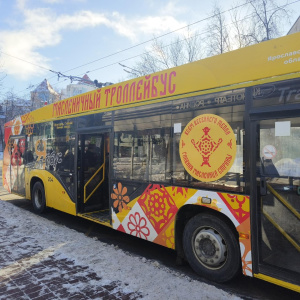 В масленичную неделю в Ярославле ходит праздничный троллейбус с живым концертом для пассажиров