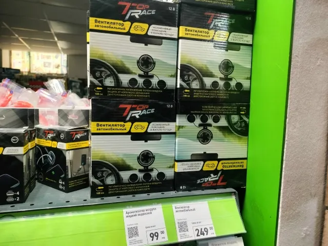 Компактное устройство крепится на приборную панель и работает от прикуривателя. Актуально для жаркой погоды или автомобилей без кондиционера.
