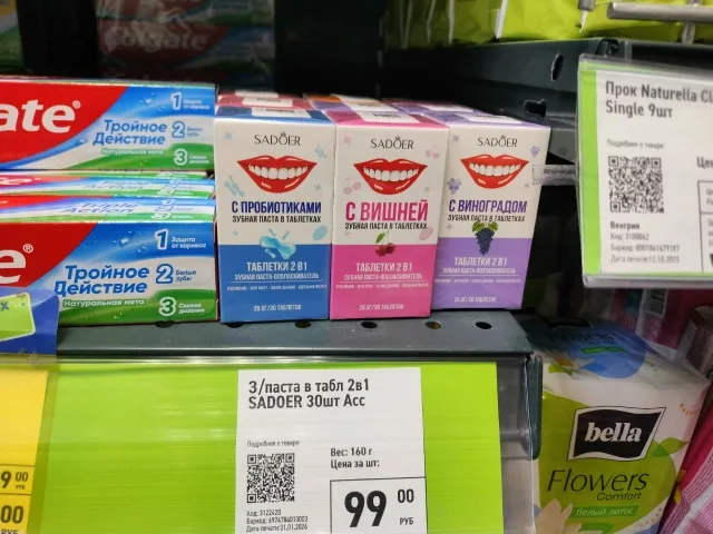 Необычный формат привычного средства гигиены. Таблетку нужно разжевать, после чего чистить зубы как обычно. Удобно брать в поездки, в спортзал или командировку.