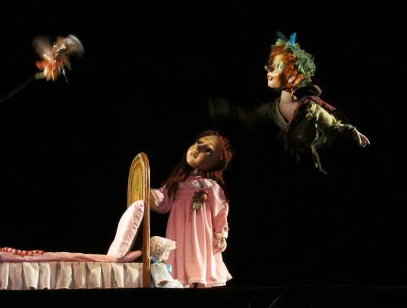 "Конечно, форс-мажоры бывают. Я с трудом вспоминаю серьёзные случаи, но, например, могут порваться нити у марионетки — тогда их чинят в антракте. Есть спектакли, где занята вся труппа, без второго состава. У нас, например, был спектакль «Былина», где участвовало 19–20 человек. В «Питере Пэне» тоже была задействована вся труппа: с планшетными куклами на одной кукле одновременно работают два-три человека, чтобы она была «живой». Один ведущий артист играет роль и управляет головой и корпусом, помощники ведут руки и ноги. Во время полёта таких артистов может быть и трое"
