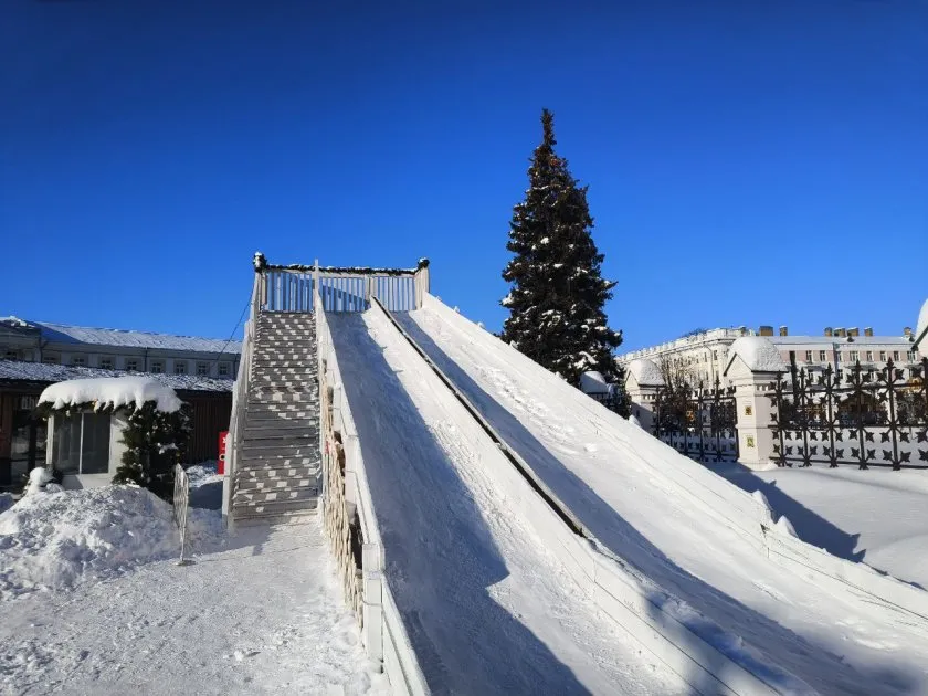 Горка на Советской площади находится рядом с катком.