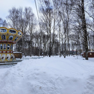 Режим работы привязан к вечернему досугу: по будням тюбинговая горка и аттракционы стартуют с 17:00 и работают до 21:00, в выходные и праздники — с 12:00 до 21:00, продажа билетов заканчивается за 15 минут до закрытия. Поэтому днём в обычный рабочий день картина напоминает Юбилейный парк: горка стоит готовая, с ограждениями и указателями, но на склоне никого, и следов свежих спусков почти нет.
