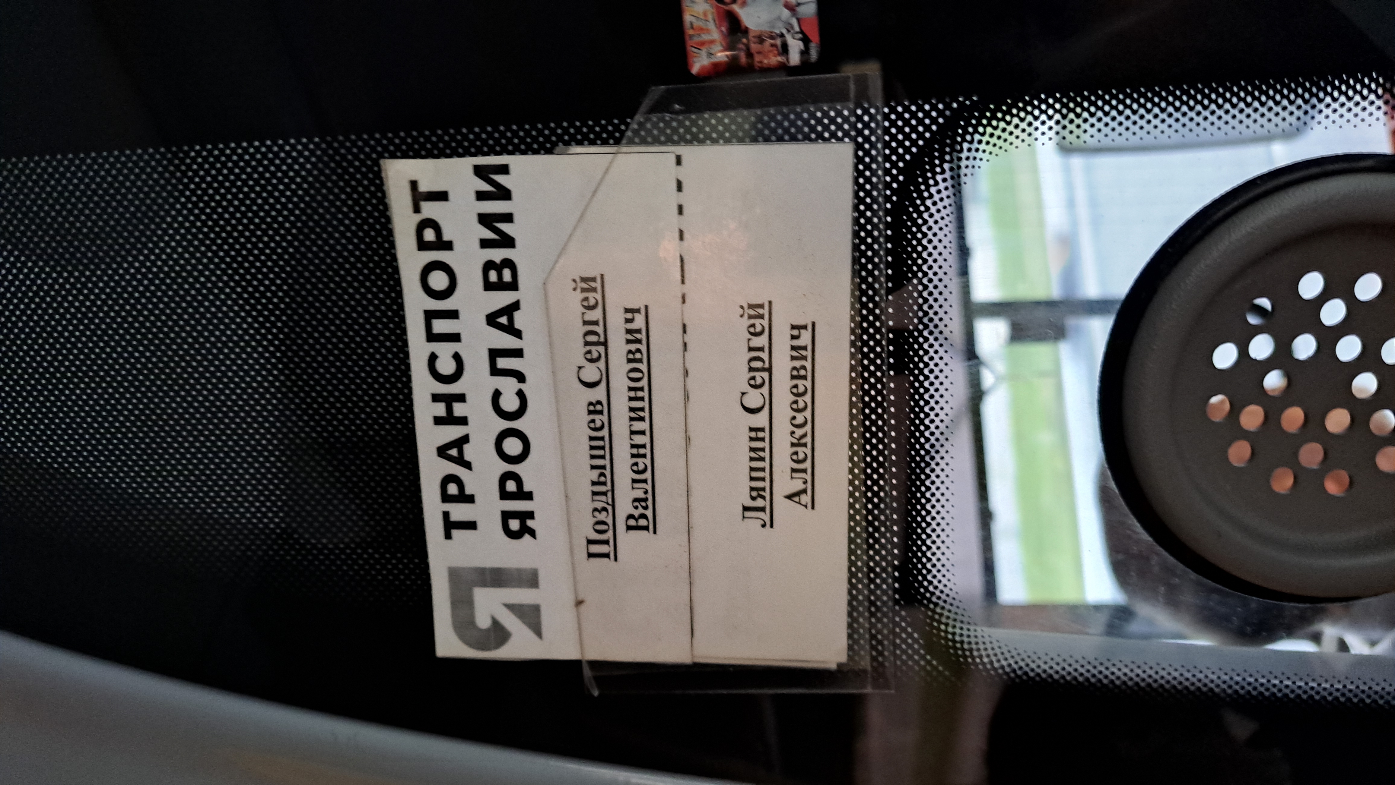 Фио на табличке водителей- Поздышев Сергей Валентинович, Ляпин Сергей Александрович. Номер автобуса Р825ЕХ76.