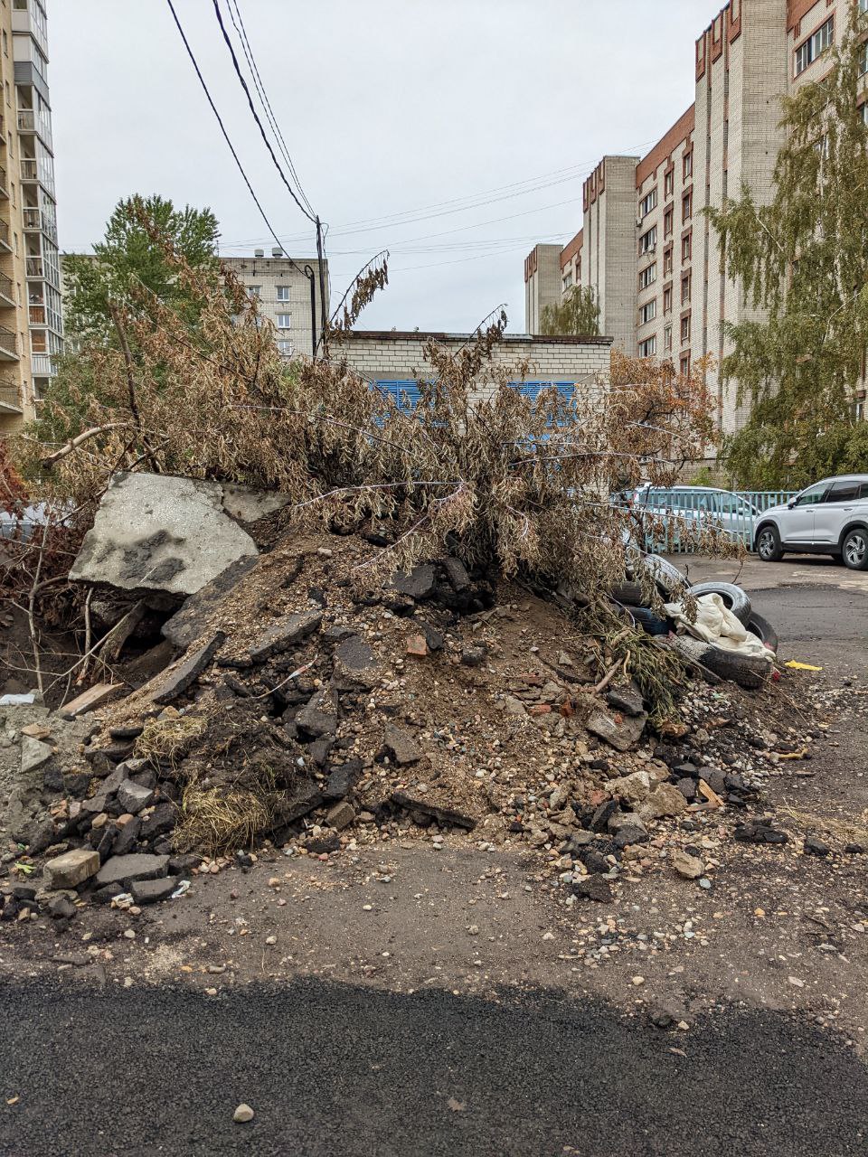 На Володарского 7 , после ремонта дороги и дворовой территории, оставили горы старого асфальта и камней. Дорогу не доделали, уехали и всё оставили как есть. Теперь там, озеро воды, камни и грязь. . Люди вынуждены ходить прямо по проезжей части дороги, а это очень опасно. Там ходят пенсионеры в ПФР, студенты и дети. Примите пожалуйста меры. Володарского 7.
