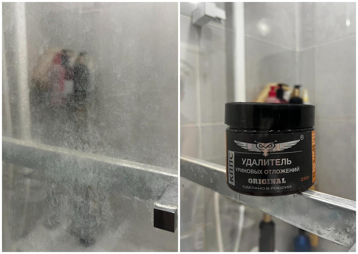 Стеклянные двери душевой со временем становятся мутными. Это не грязь, а тонкий слой минералов. Чтобы вернуть прозрачность, можно использовать мягкое кислотное средство. Оно растворяет солевые отложения и возвращает стеклу блеск.