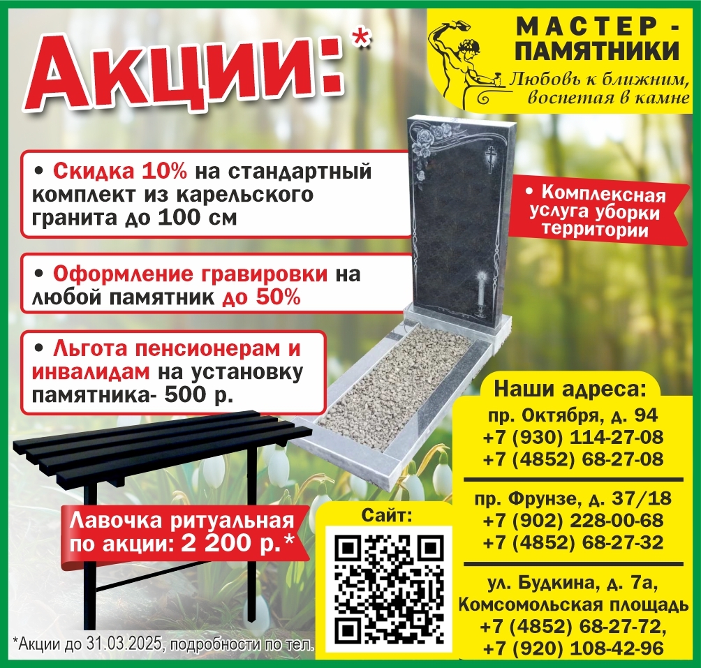Желание сэкономить на памятнике может привести к неприятностям. Некоторые фирмы продают дешевые памятники из суррогатных материалов, подсовывают искусственный камень вместо природного. И так спустя несколько лет памятник начинает рассыпаться. Это несет не только дополнительные траты, но и переживания, ведь хочется сохранить память об умершем близком человеке как можно дольше. Вместо выбора дешевого материала лучше присмотритесь к специальным предложениям и акциям, которые есть у ритуальных фирм.